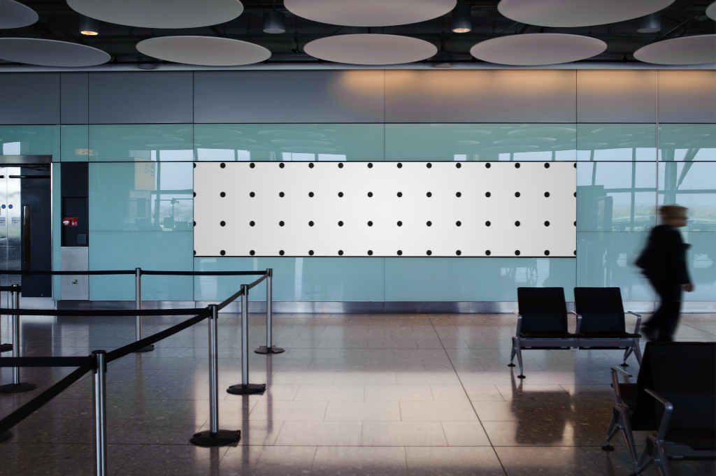 In airport, glass wall